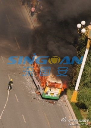 今天中午11點(diǎn)35分左右,烏魯木齊市光明路一輛528A路公交車起火燃燒,火勢較大,消防人員正在撲救中,起火原因尚不明。(央視記者蘇蒙)