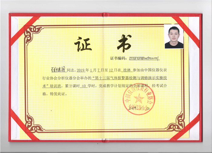 第13屆氣體報警器檢測與調(diào)修演示實操技術(shù)證書