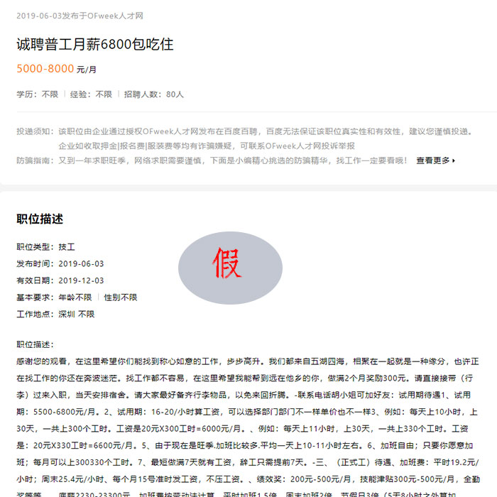 近期我公司陸續(xù)接到求職者舉報(bào),一名自稱(chēng)胡小姐的女士以我公司“深圳市深國(guó)安電子科技有限公司”的名義對(duì)外發(fā)布虛假招聘信息,進(jìn)行虛假招聘工作人員,給我公司的聲譽(yù)帶來(lái)極為惡劣的影響,為防止廣大求職者上當(dāng)受騙,我公司對(duì)招聘事項(xiàng)鄭重聲明如下: