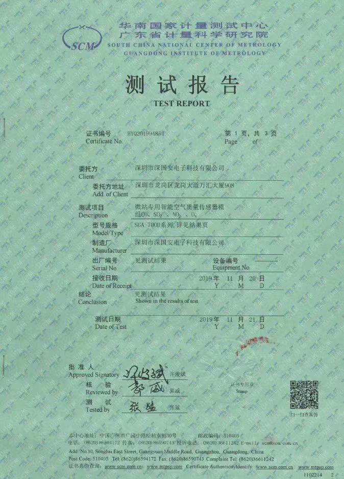 深國安微站專用四氣傳感器模組出報告了,數(shù)據(jù)好的難以置信!廣東省計量院專業(yè)檢測,權(quán)威認證!