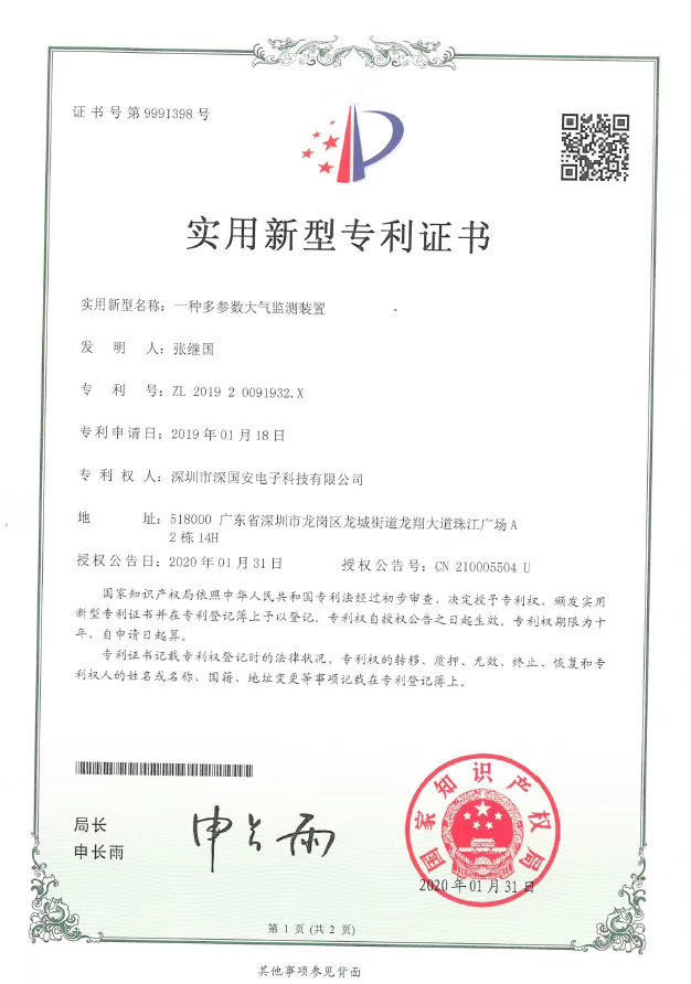 熱烈祝賀深國安再獲一實(shí)用新型專利(一種多參數(shù)大氣檢測裝置),俗稱“四氣智能盒”。1-4種氣體可以任意組合,可擴(kuò)散采樣,也可內(nèi)置真空泵主動(dòng)采樣;多種信號(hào)輸出可選;大氣環(huán)境監(jiān)測,認(rèn)準(zhǔn)深國安!