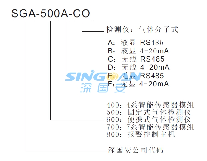 深國安氣體檢測儀產(chǎn)品型號命名規(guī)則如下: