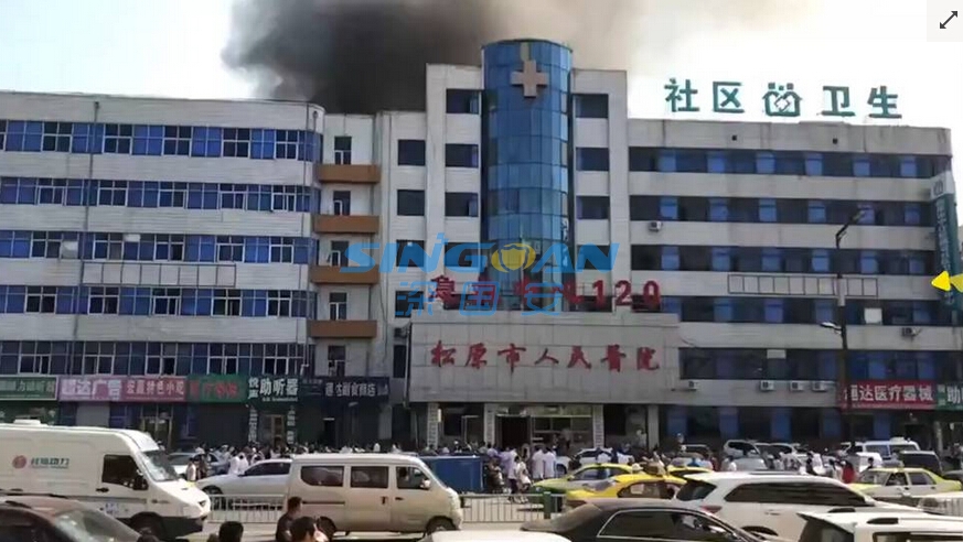 現(xiàn)場市民提供的視頻可以看到,事發(fā)時(shí),松原市人民醫(yī)院有大量的濃煙冒起,而爆炸產(chǎn)生的沖擊力把救護(hù)車的車窗玻璃震碎。在醫(yī)院的樓內(nèi),現(xiàn)場人員緊急撤離,地面一片狼藉。